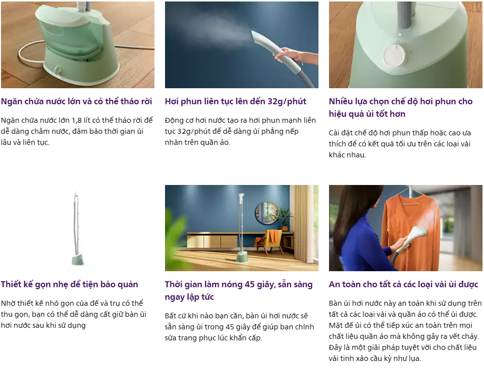 - Hơi phun liên tục 32 g/phút ủi các vết nhăn khó nhằn