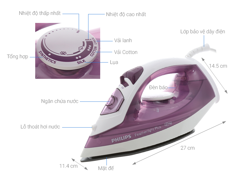 Điều chỉnh nhiệt độ ủi phù hợp với từng loại quần áo, từng chất liệu vải với núm vặn tiện thao tác