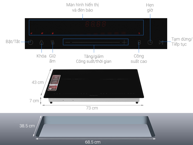 Bếp từ KANGAROO thiết kế vừa lắp âm vừa lắp dương linh hoạt, đáp ứng đa dạng thiết kế gian bếp.