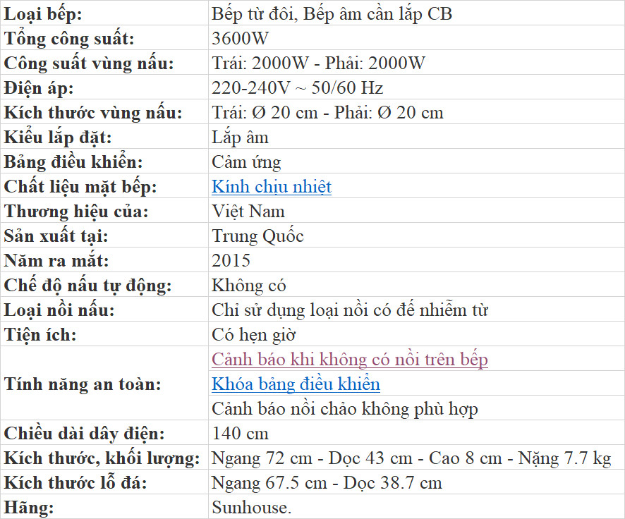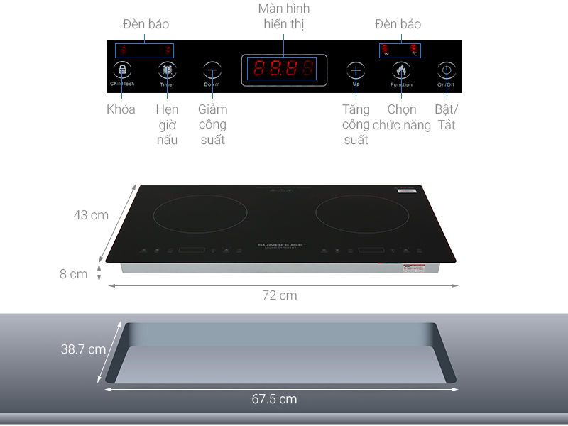 Bếp từ đôi Sunhouse SHB9101 có thể lắp đặt âm mang đến sự gọn gàng, hiện đại cho không gian bếp