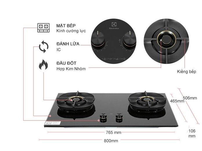 Bếp ga ELECTROLUX có công suất nấu 5.2 kW/h/lò giúp nấu hoặc hâm thức ăn nhanh chóng