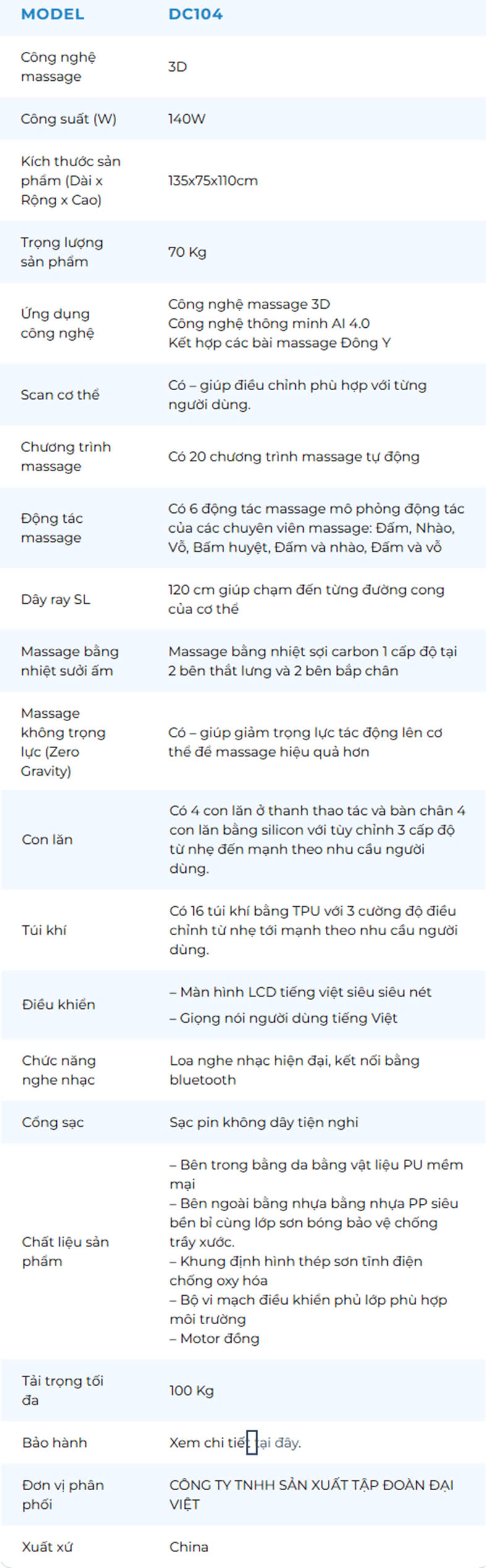 Ghế Massage Daikiosan DC104 là một sản phẩm ghế massage hiện đại và tiện dụng. Với thiết kế sang trọng và chất lượng vượt trội, chiếc ghế massage này đem đến những trải nghiệm thư giãn tuyệt vời cho người dùng. Cùng Đại Việt tìm hiểu về ghế Massage toàn thân Daikiosan DC104 ngay trong bài viết dưới đây nhé!