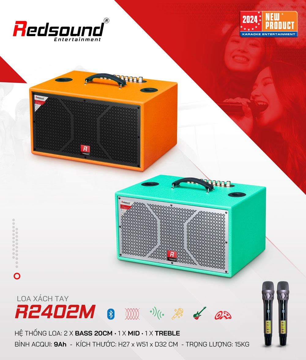 Loa xách tay di động REDSOUND R2402M là Một sản phẩm hoàn hảo cho những ai yêu thích âm thanh di động, dễ dàng mang đi các buổi picnic vui chơi dã ngoại.