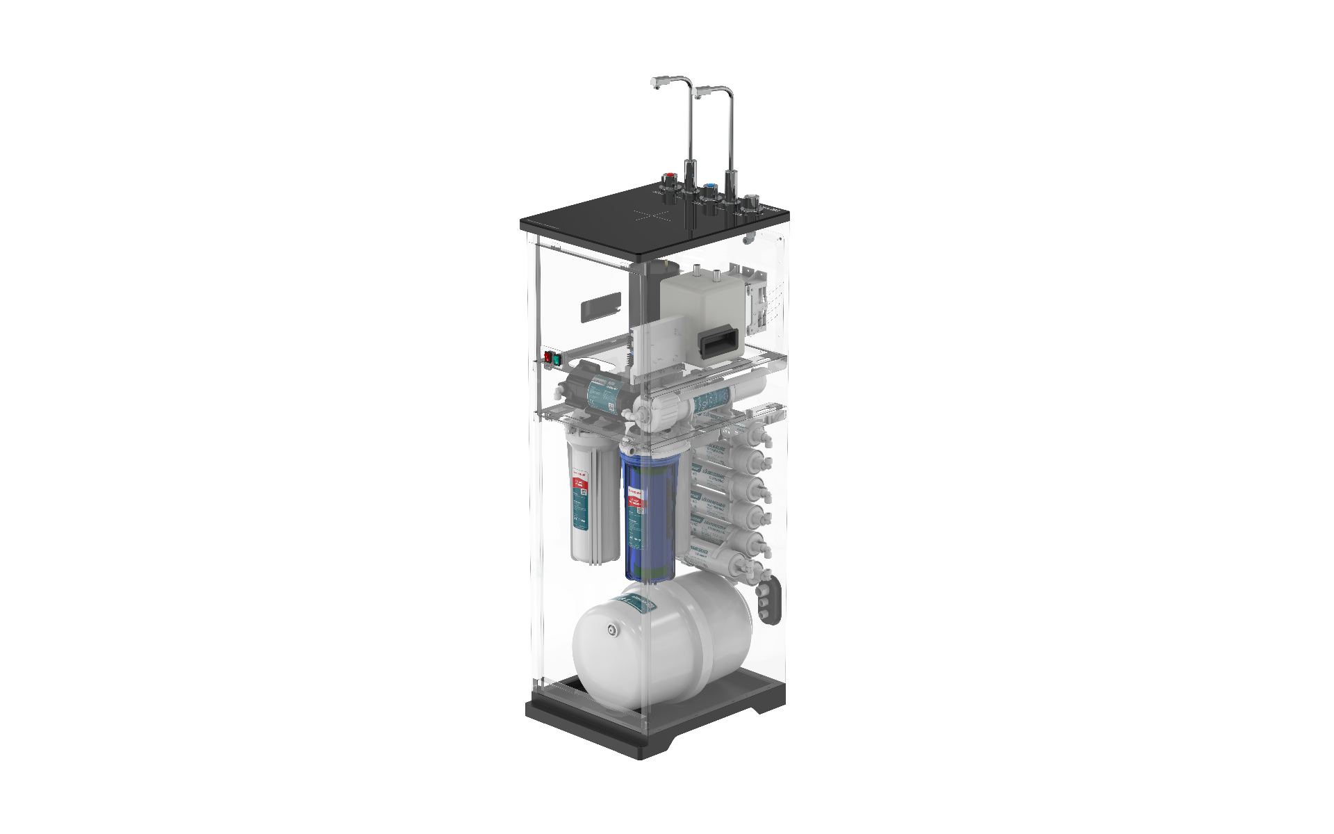 - Màng lọc RO cao cấp nhập khẩu từ Mỹ: Hoàn toàn loại bỏ tạp chất, ion kim loại nặng, chất hữu cơ, amip, asen, vi khuẩn với kích thước nhỏ nhất.
