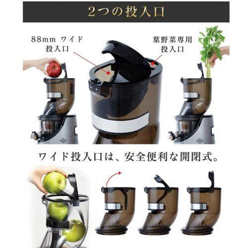 Máy ép trái cây tốc độ chậm dành cho kinh doanh hiệu KUVINGS CS520CB với thiết kế miệng máy ép nguyên trái lẫy tự động thông minh “Flap Gate” với 2 miệng ép (miệng ép nguyên trái củ quả và miệng ép rau) được cấp bằng sáng chế với đường kính 8.8cm ép cả quả mà không cần phải cắt lát và dùng sức để đẩy trái cây giúp bạn tiết kiệm 50% thời gian chuẩn bị nguyên liệu cũng như hạn chế mất chất dinh dưỡng của hoa quả khi bị cắt bổ. Ngoài ra, bảng điều khiển thiết kế một nút nhấn đơn giản và dễ dàng sử dụng với chức năng : tắt, mở và đảo ngược (khi nguyên liệu bị kẹt) đáp ứng những ly nước ép hoa quả với hương vị, màu sắc đa dạng và phong phú cho thực đơn của quán.