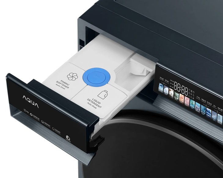 Máy giặt AQUA Inverter 10 kg AW10-BD4377U1L(GN) có công nghệ giặt sạch sâu đánh bọt Essence Wash và Kết nối Wifi – Haismart dễ dàng điều khiển từ xa,sở hữu thiết kế lồng ngang cùng bảng điều khiển cảm ứng đa sắc hiện đại, tạo điểm nhấn nổi bật cho không gian. Nhờ sự kết hợp giữa công nghệ giặt thông minh AI và Smart Dosing, thiết bị có khả năng tối ưu chương trình giặt và tự động phân bổ nước giặt xả một cách thông minh, giúp nâng cao hiệu quả giặt giũ và tiết kiệm tối đa.