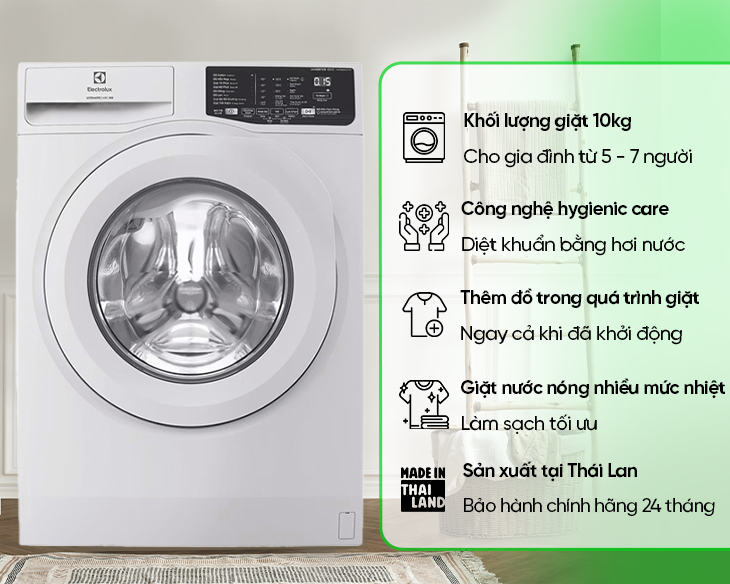 – Ngoài ra, máy giặt ELECTROLUX còn cho phép bạn chọn chu trình giặt với 6 cài đặt nhiệt độ phù hợp với từng loại vải giúp bạn chăm sóc trang phục của mình tốt hơn.