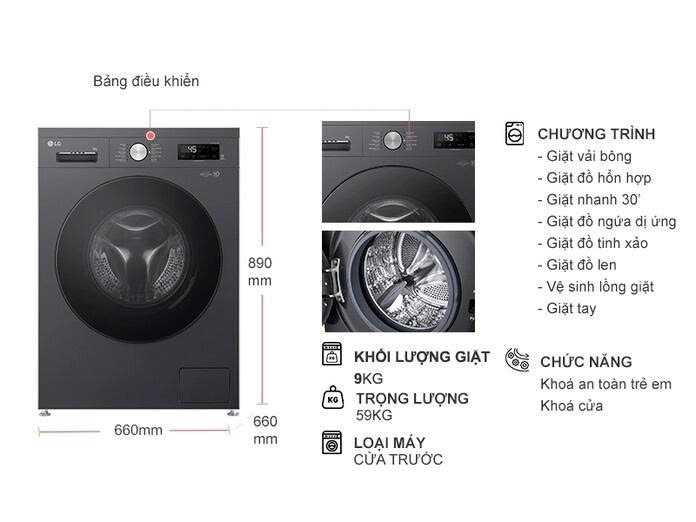 Máy giặt LG Inverter 9 kg FB1209S5M Công nghệ giặt 6 Motion DD mô phỏng 6 chuyển động giặt khác nhau, hạn chế tình trạng xoắn rối,Công nghệ giặt hơi nước Steam loại bỏ các tác nhân gây dị ứng, đảm bảo quần áo luôn sạch.