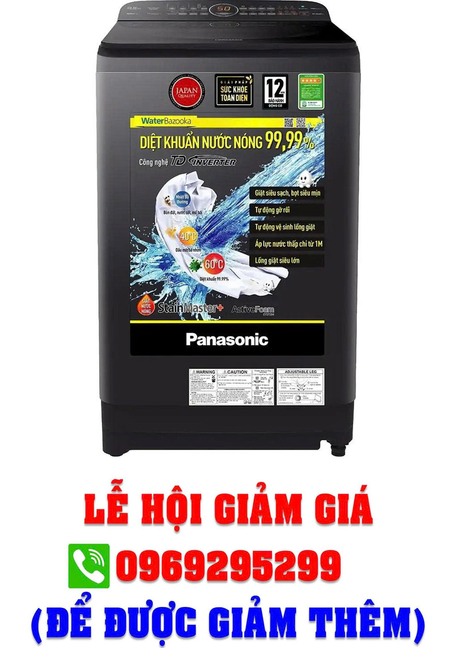 Công nghệ giặt nước nóng trên máy giặt PANASONIC được Viện Công nghệ sinh học Việt Nam công nhận có thể giảm tới 99,9% các tác nhân gây dị ứng.