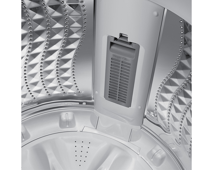 – Bộ lọc xơ vải Magic Filter: Giúp lọc sạch hiệu quả các loại bụi bẩn và xơ vải, giúp quần áo sau khi giặt trở nên sạch cặn bám hơn, đồng thời giảm bớt tình trạng nghẽn tắc đường ống thoát nước sau mỗi chu trình giặt, xả và sấy, nhờ đó tiết kiệm thời gian vệ sinh máy giặt.