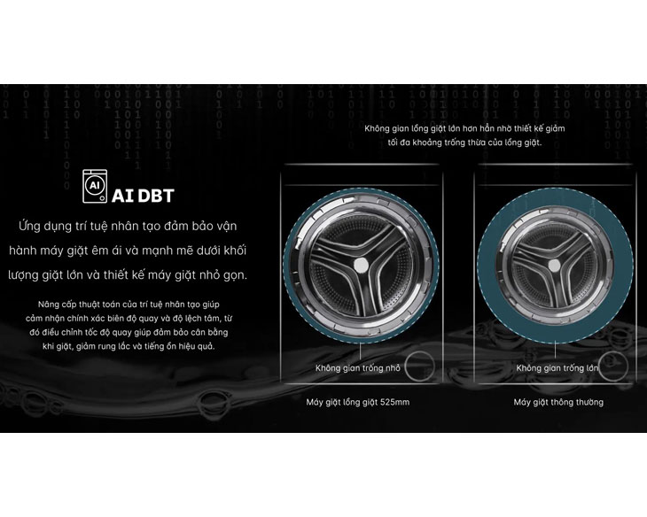 - Tính năng nổi bật:Lồng giặt lớn 525mm