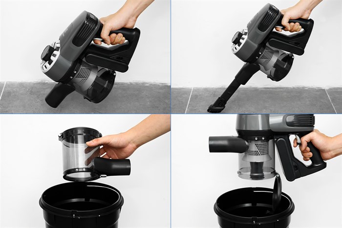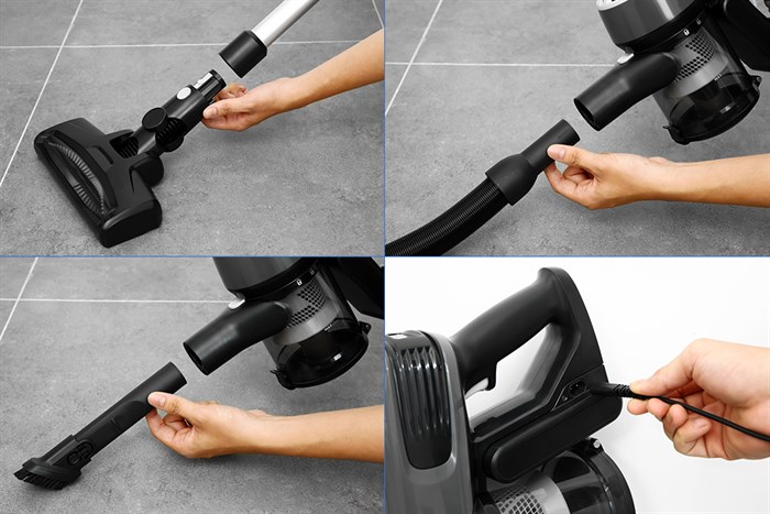 Sản phẩm được thiết kế 2 trong 1, có thể tháo rời khỏi ống nối hoặc thân máy để sử dụng như một máy hút bụi cầm tay. Điều này rất thuận tiện cho việc làm sạch các khu vực trên cao như: ghế sofa, giường đệm, xe hơi và nhiều khu vực khó vệ sinh khác.