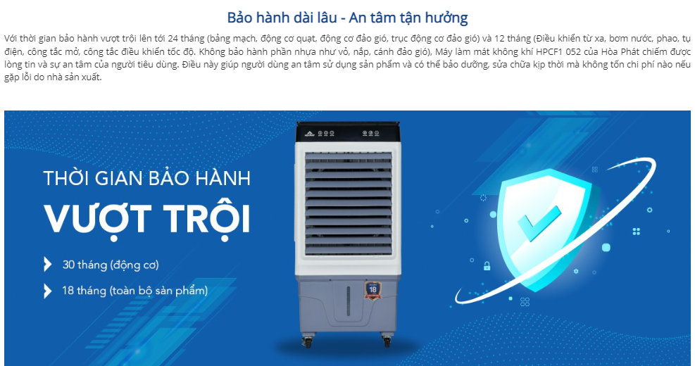 - Động cơ bằng đồng nguyên chất bền bỉ, hiệu năng cao