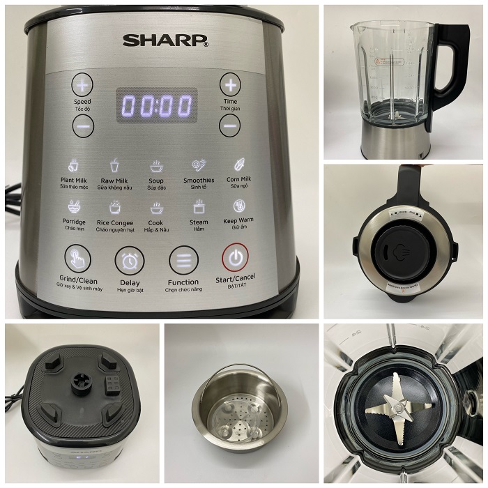 ✅10 chức năng nấu cho lựa chọn đa dạng Không chỉ là máy làm sữa hạt, Sharp 168 còn có thể nấu cháo, nấu súp, say sinh tố…với 10 chức năng được lập trình sẵn bao gồm: Sữa thảo mộc, sữa đậu nành, sữa không nấu, xay khô, cháo nguyên hạt, cháo ăn dặm, hầm, nấu súp, sinh tố, hấp Với đa dạng các món ăn nấu được, máy làm sữa hạt Sharp 168 chắc chắn sẽ trở thành trợ thủ đắc lực của người nội trợ. ✅Cối có cấu tạo 5 lớp cực kì dày dạn, bao gồm: Lớp 1: Kính cường lực Lớp 2: Lớp Peptide Protein Nano Lớp 3: Lớp chống oxi hoá Lớp 4: Các nguyên tố vi lượng Lớp 5: Lớp hoạt hoá phân tử nước