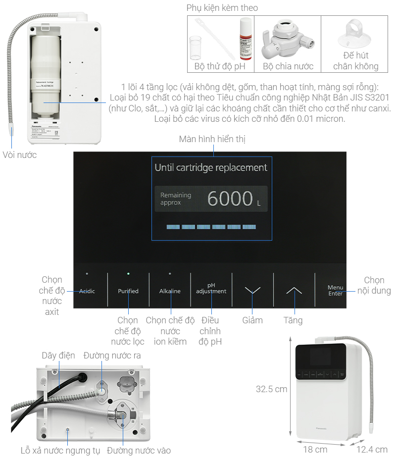 Tính năng Máy lọc nước điện giải ion kiềm PANASONIC TK-AS700-WVN