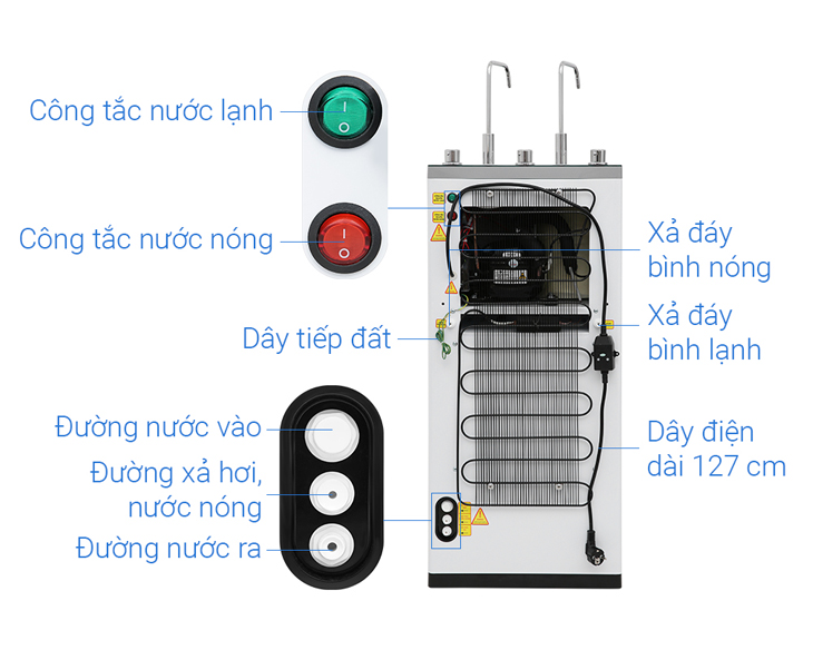- Dung tích Tổng 10 lít (Nước nóng 2 lít, nước lạnh 2 lít, nước thường 6 lít)
