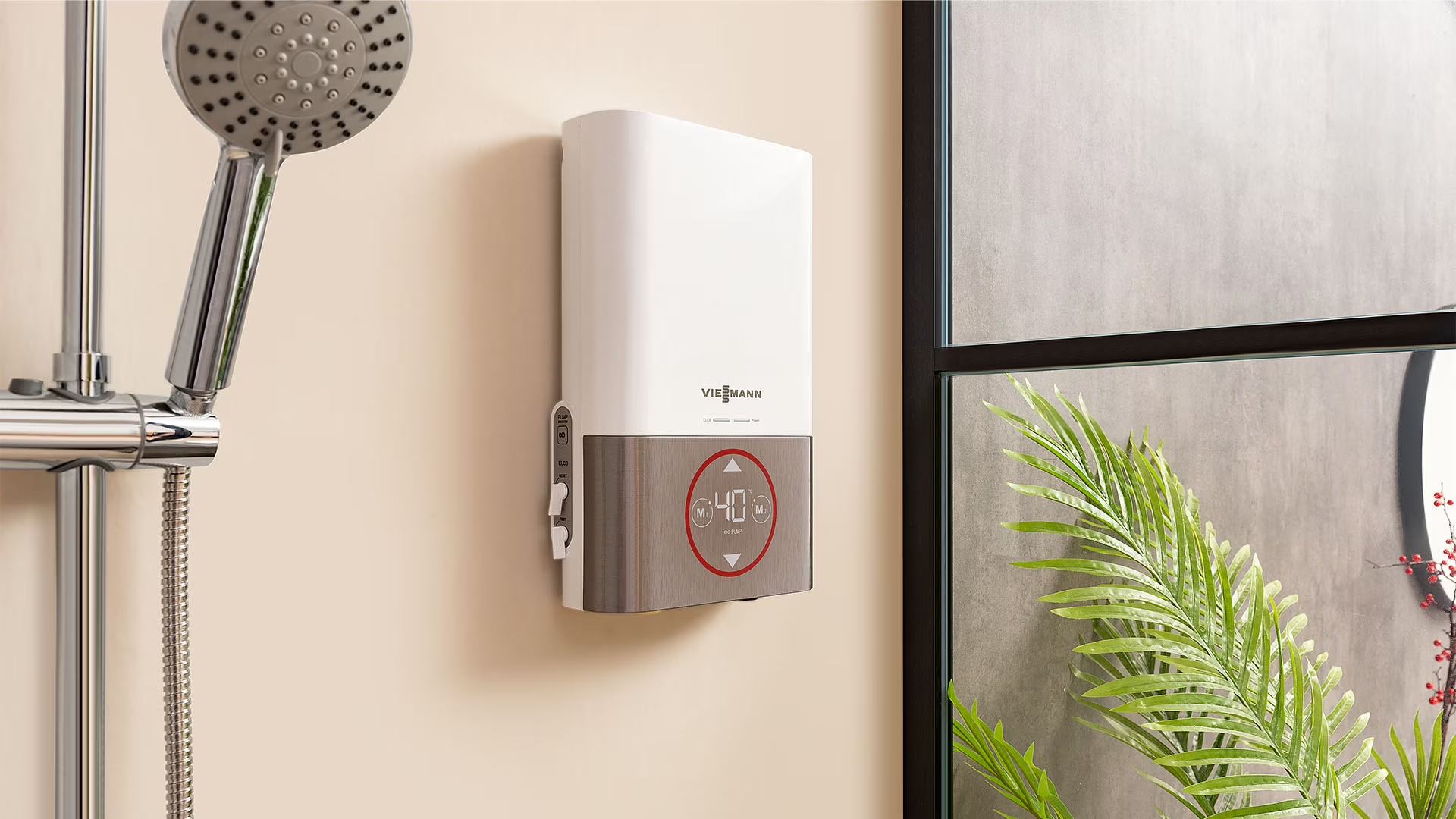 Máy nước nóng trực tiếp Viessmann Vitowell Easy Deluxe mang đến sự sang trọng và hiện đại cho không gian phòng với tông màu trắng đơn giản.