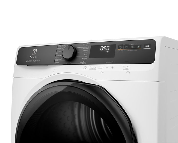 – Bảng điều khiển song ngữ Anh – Việt, phím điều khiển cảm ứng, nút nhấn, núm xoay, có màn hình hiển thị rõ nét giúp bạn dễ dàng quan sát và tùy chọn chương trình sấy
