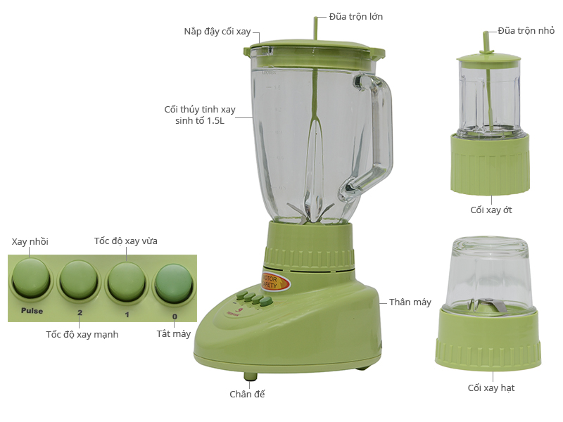 Tự ngắt khi quá tải Máy chỉ hoạt động khi lắp cối vừa thân máy |