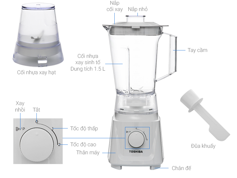 2 tốc độ, 1 nút nhồi để trộn nguyên liệu |
