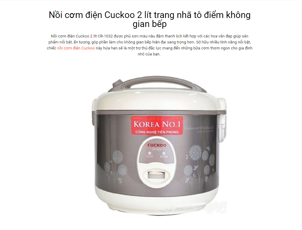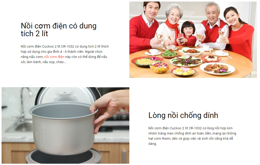 Dung tích 2.0 lít phù hợp với gia đình 4 - 6 thành viên