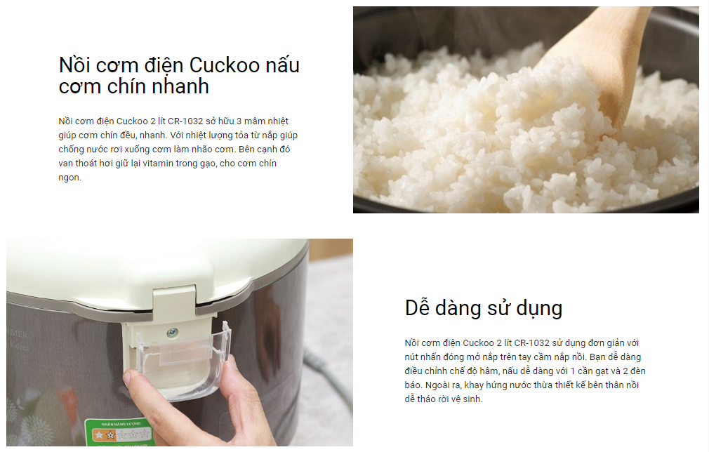 Công suất 650W với 3 mâm nhiệt giúp nấu cơm chín nhanh