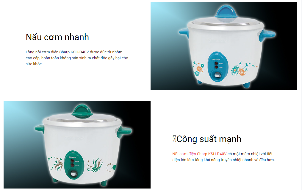 Công suất lớn, có mâm truyền nhiệt giúp cơm chín nhanh hơn