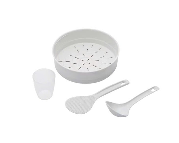 - Bộ phụ kiện đi kèm gồm: xửng hấp, muỗng cơm, muỗng canh và cốc đong tiện lợi.