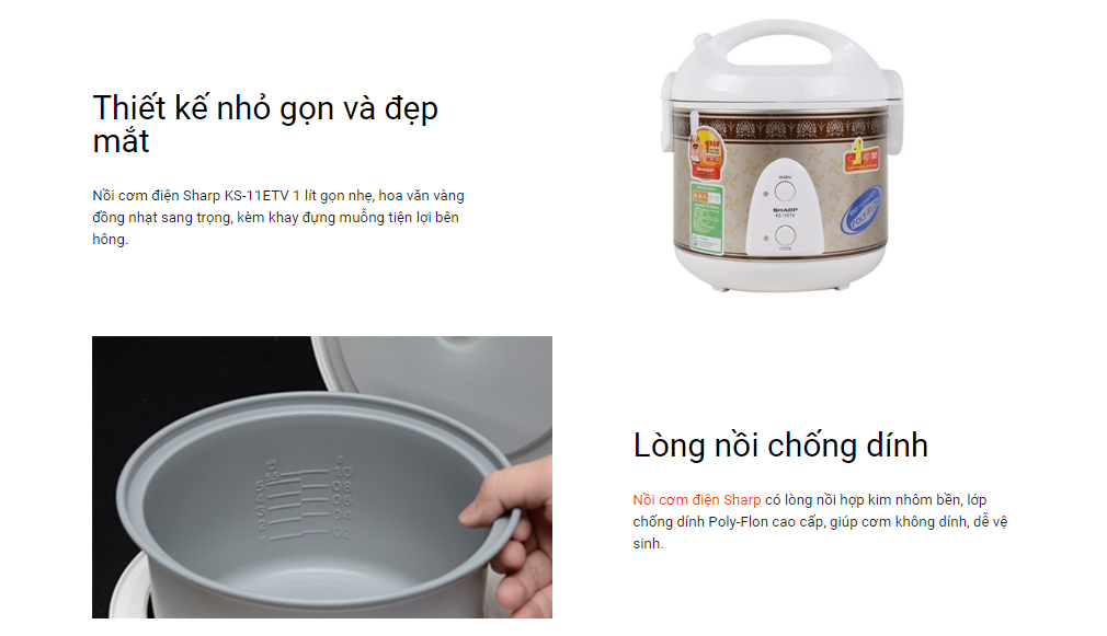 Phủ chống dính Poly-flon giúp cơm không dính vào đáy nồi