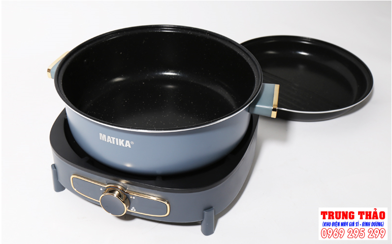 Bên cạnh đó, mâm nhiệt dưới đáy nồi có thể sử dụng độc lập như một bếp hồng ngoại, phù hợp với hầu hết các loại nồi, xoong, chảo trong căn bếp của bạn. Sự kết hợp độc đáo này giúp Nồi lẩu nướng đa năng 3in1 Matika MTK-9055 vừa có thể ăn lẩu, vừa ăn nướng, hoặc nấu nướng chiên rán bằng chính những chiếc nồi khác một cách dễ dàng. Thỏa sức trổ tài trong các bữa ăn liên hoan gia đình, bạn bè với món lẩu và nướng siêu tiện lợi.
