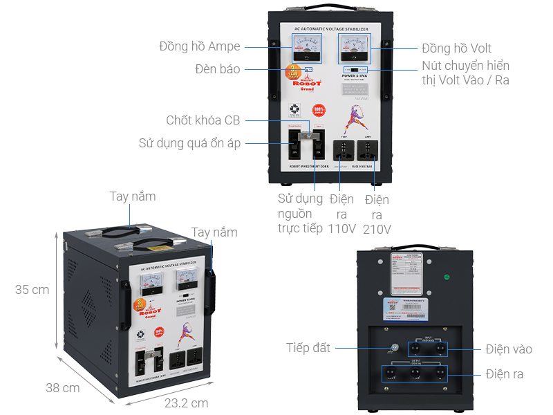 Ổn áp Robot giảm nguy cơ chập điện, cháy nổ và bảo đảm an toàn cho tất cả các thiết bị điện trong gia đình với thời gian ổn định mạng lưới điện của máy từ 2 - 5 giây.