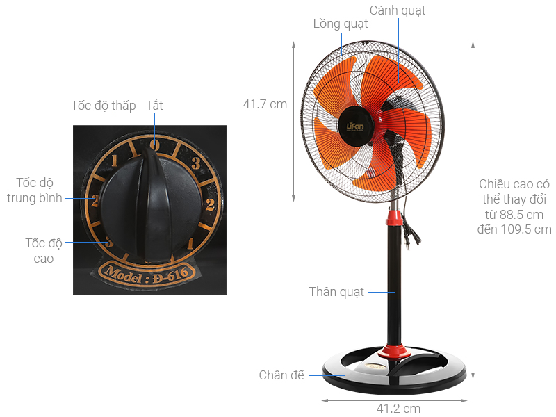 Quạt đứng Lifan Đ-616 gọn đẹp, sang trọng, 5 cánh quạt cùng công suất 45W cho khả năng làm mát tốt, dễ sử dụng, là sản phẩm thích hợp cho mọi gia đình Việt.