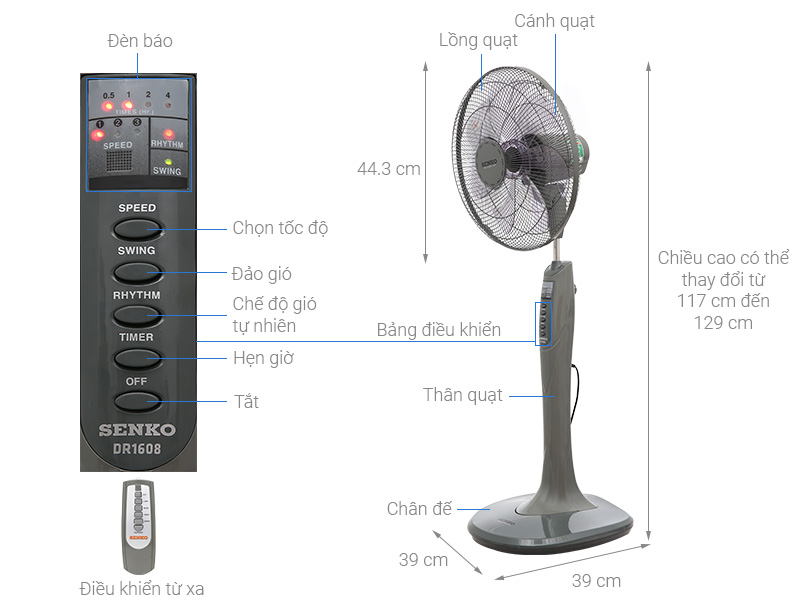 - Mẫu quạt đứng này của Senko sử dụng động cơ bạc thau, giúp cho quạt hoạt động được êm ái và bền bỉ.