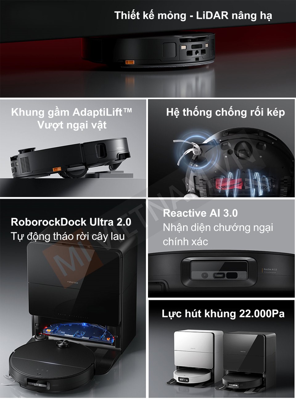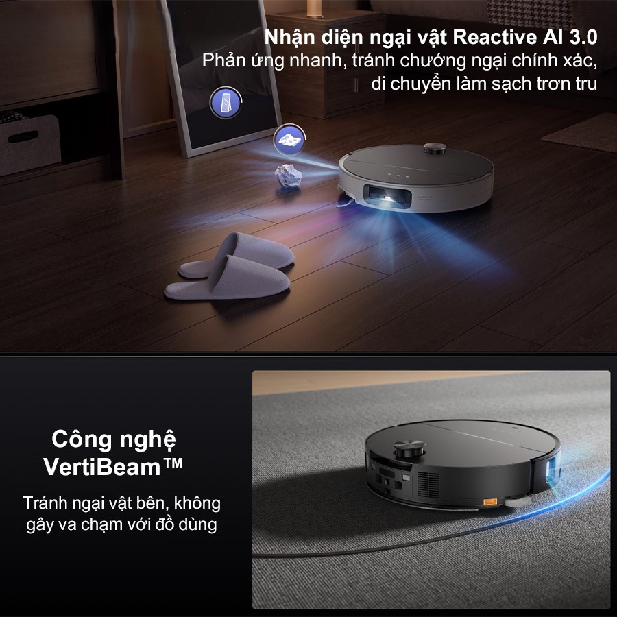 - Tránh vật cản chính xác nhờ công nghệ Reactive AI 3.0 và VertiBeam™