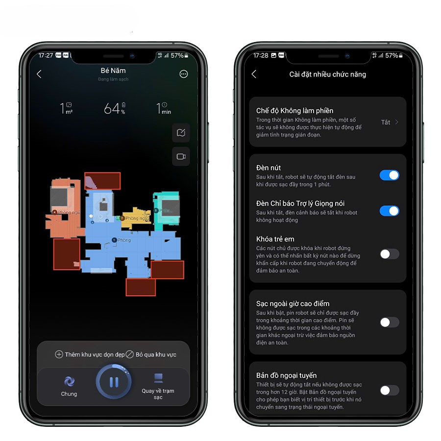 - Tự động đổ rác và nạp nước ấm cho robot: Mang lại sự tiện lợi tối đa, giảm thiểu sự can thiệp từ người dùng.