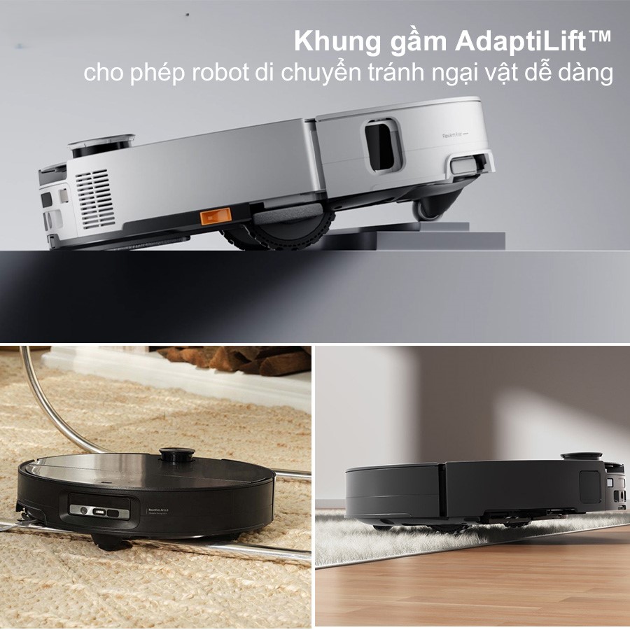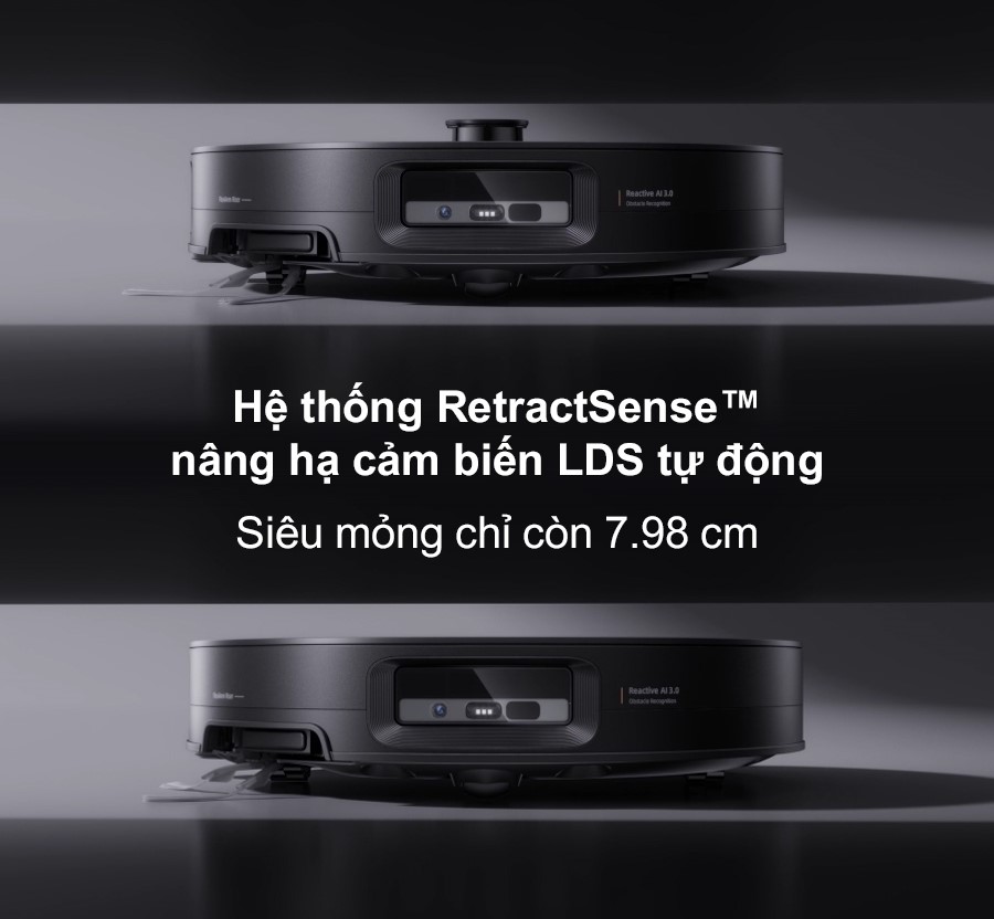 Robot hút bụi thông minh này có khả năng điều chỉnh đồng bộ: chổi cạnh nâng lên, chổi chính nâng lên, khăn lau hạ xuống hoặc động cơ hút tạm dừng theo nhu cầu làm sạch cụ thể. Cơ chế này đảm bảo sự linh hoạt tối ưu, mang lại trải nghiệm làm sạch hiệu quả và bảo vệ mặt sàn tối đa.