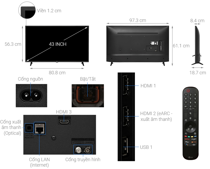 - Với kích cỡ màn hình 43 inch, tivi là lựa chọn lý tưởng cho những gian phòng có diện tích vừa và nhỏ.