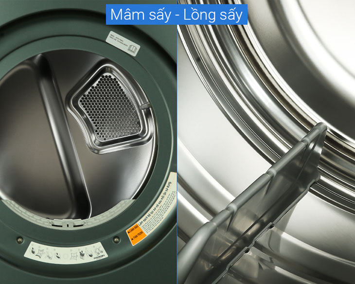 - Công nghệ máy nén bơm nhiệt Inverter sấy khô, hạn chế hư hỏng sợi vải