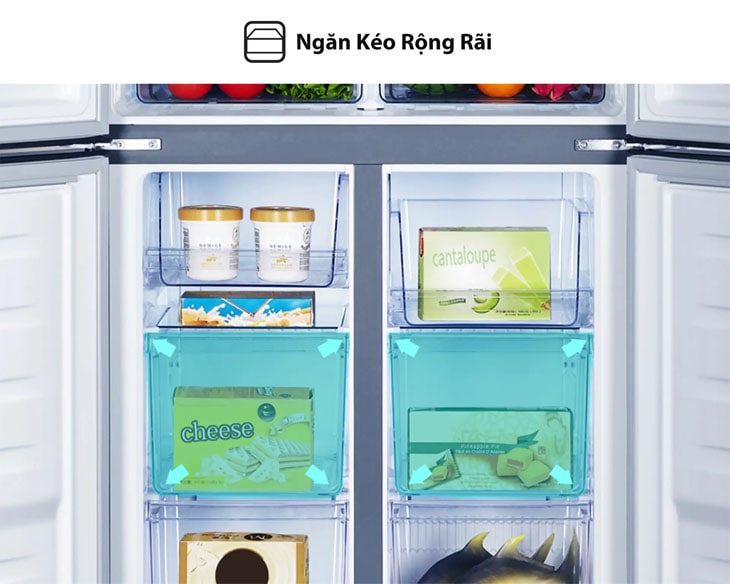– Ngăn kéo rộng rãi và trong suốt không chỉ đáp ứng nhu cầu về dung tích lưu trữ mà còn có thể sắp xếp gọn gàng, rút ngắn thời gian tìm kiếm thực phẩm với số lượng lớn.