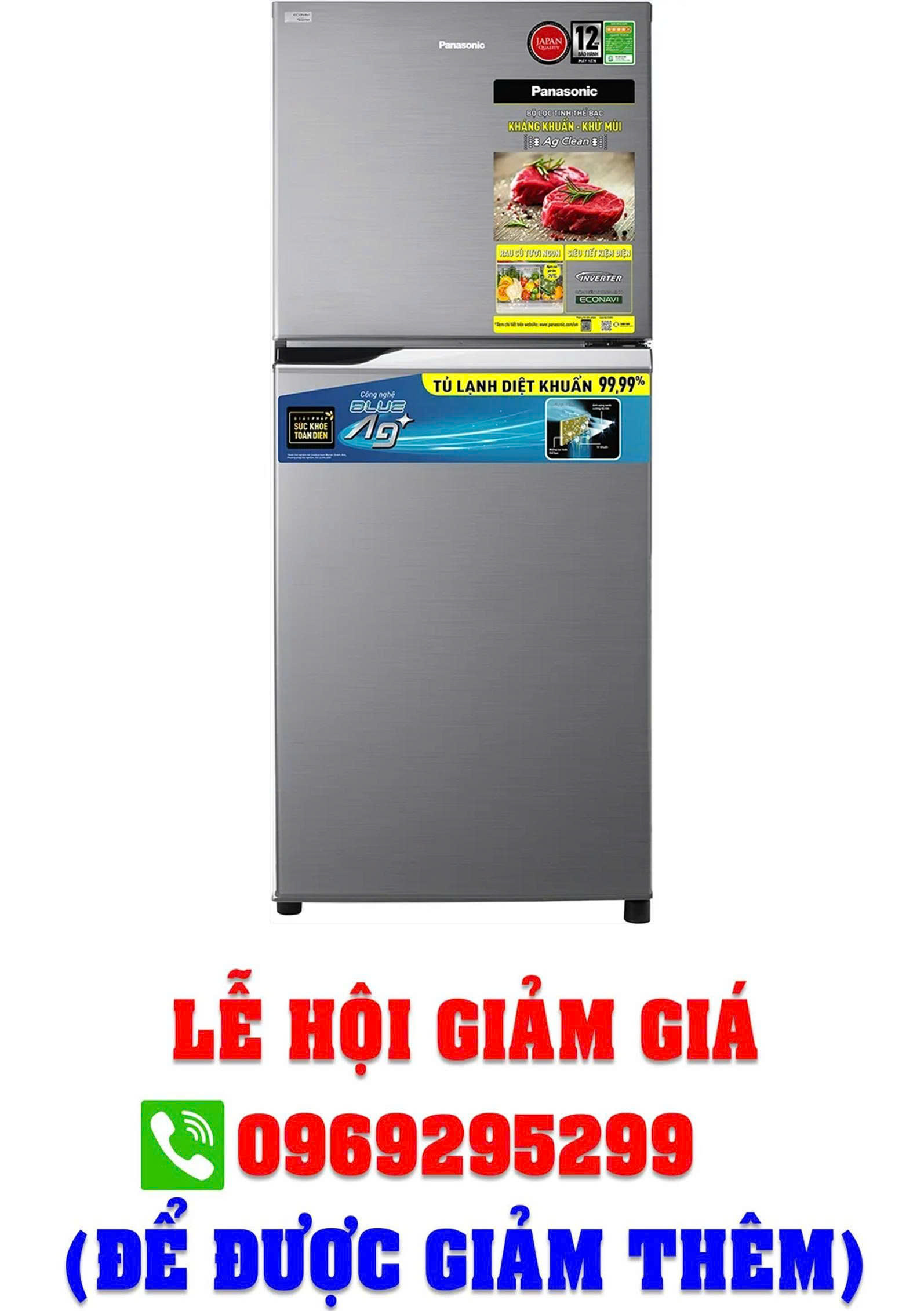 Công nghệ Blue Ag+ trên tủ lạnh PANASONIC, sử dụng ánh sáng xanh kích hoạt tinh thể bạc Ag+, giúp diệt tới 99,99% vi khuẩn trên toàn bộ ngăn mát tủ lạnh, giúp thực phẩm luôn tươi ngon và giữ trọn vẹn dinh dưỡng.